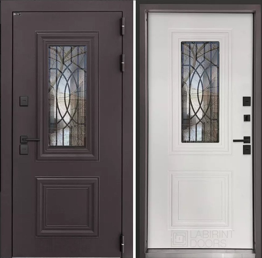 3-х камерный стеклопакет 81 мм, снаружи тонированное стекло графит, внутри зеркальное серебро. Лазерная решетка внутри стеклопакета (муар черный)